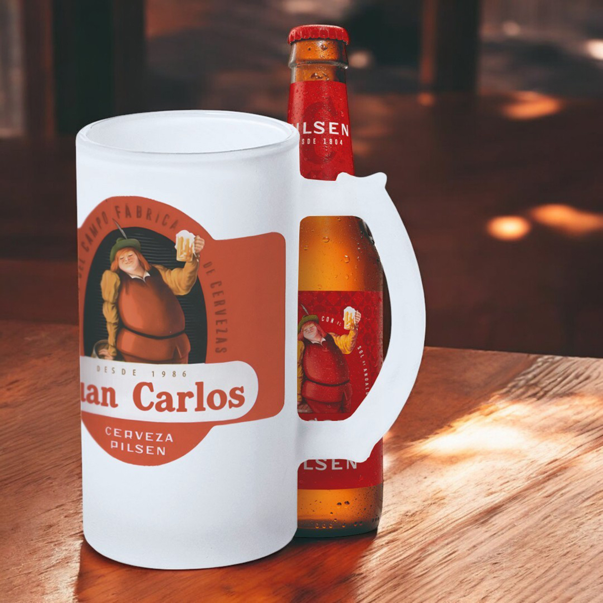 - Jarras estilo alemán: Con un diseño robusto y tradicional, son ideales para los padres que disfrutan de una buena cerveza con un toque vintage. Puedes personalizarlas con grabados o impresiones a todo color.